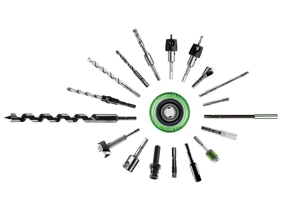 Festool offers a wide range of durable drilling and screwdriving tools with the CENTROTEC interface. CENTROTEC drilling and screwdriving tools can be effortlessly clamped in the Centrotec Chuck, allowing you to change tools quickly and easily. Whether you are working on a small piece of furniture or a large roof truss, you are well equipped with our CENTROTEC insert tools. In addition to a variety of bits and drills, our range also includes CENTROTEC Self-centering bits, Bit Holders, Adapters, Drill bits with depth stop and much more. Our practical sets ensure that your accessories are always neatly stowed away and ready to hand at all times.