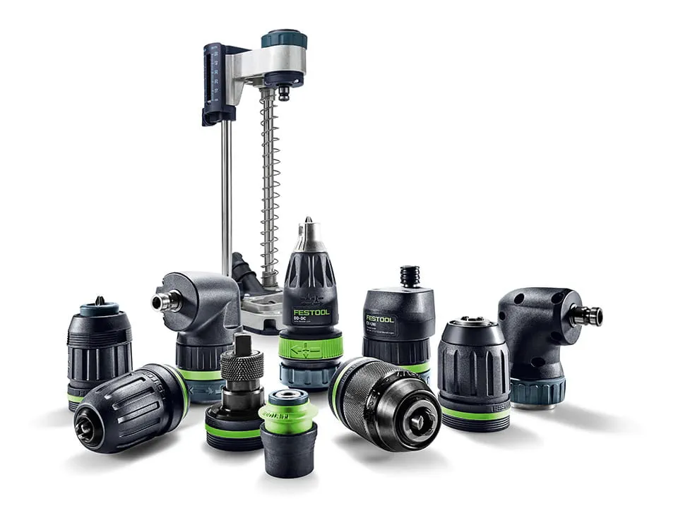 Festool cordless screwdrivers fit perfectly into the system. Our system accessories such as the quick-change system, Angle Attachment, Eccentric Chuck, Depth Stop Chuck, Battery packs, chargers, bits and drills for a wide range of applications make your work with a Festool cordless screwdriver even more efficient.